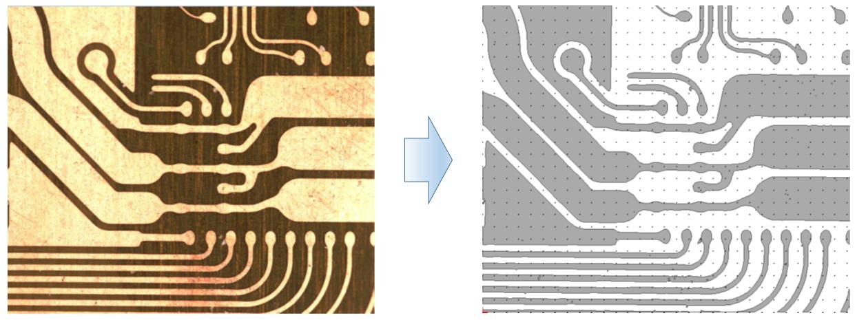 画像データ(BMP、JPEG、PNG等)からエッジ抽出を行いCADデータで取り出します。またCADデータから画像データ(BMP)に変換することができます。